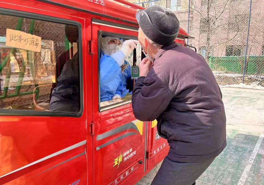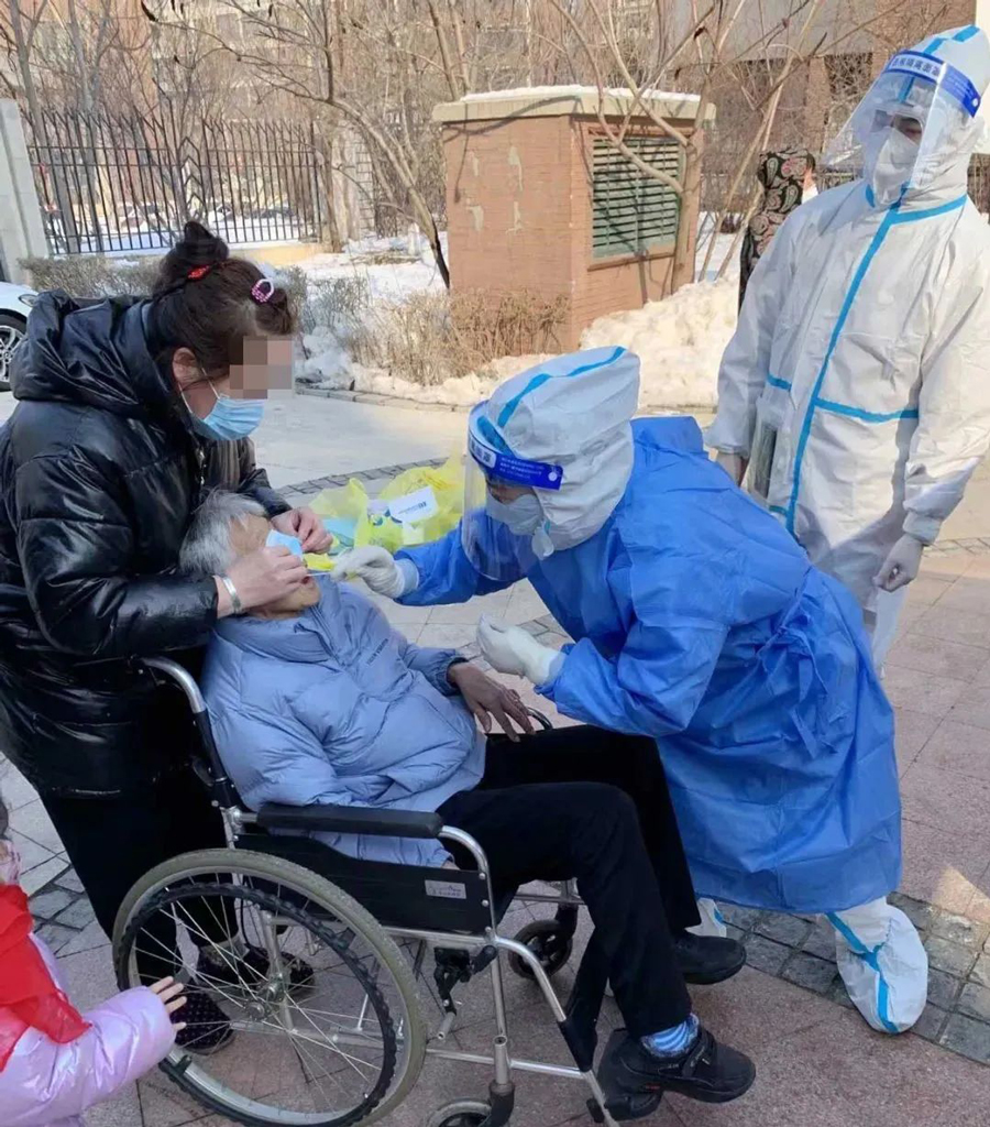 时值初春,天气寒冷,大雪纷飞。为了方便居民核酸采样,简易棚下、三轮车里、未竣工的工地上……都是采样现场。大家顶风冒雪,冻伤了双手,冻麻了双脚,但采样不停。越是在艰苦的情况下,党员越要发挥引领作用。党员刘淑波因长时间戴防护口罩,脸部严重过敏。性格要强的她,忍着瘙痒完成每一天的工作。姐姐刘淑梅和她同在一个核酸采样队,她们是名副其实的“抗疫姊妹花”。