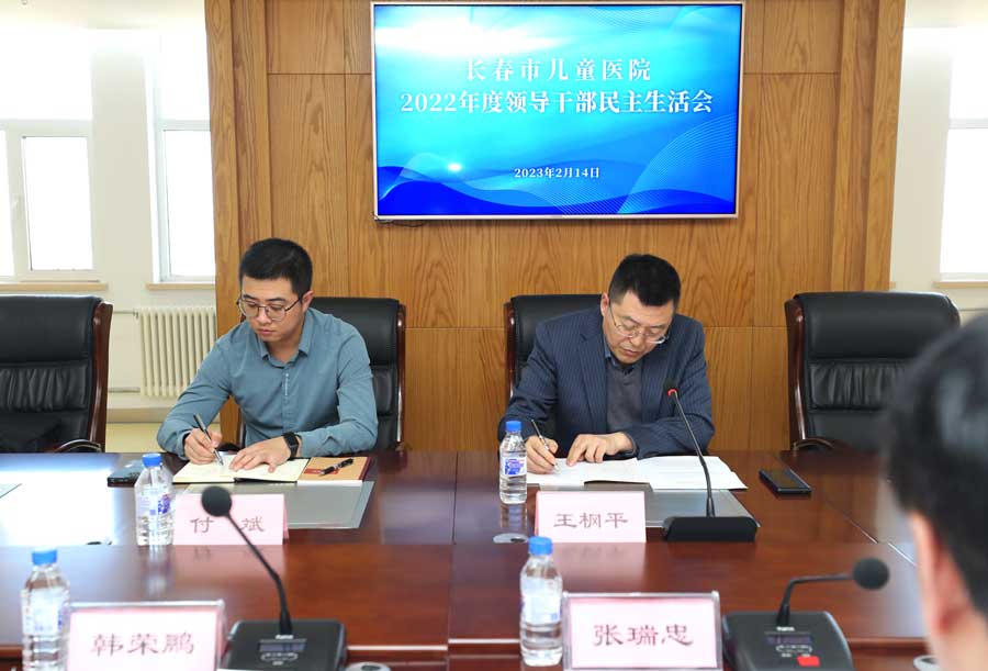 按照《长春市卫健委党组关于开好2022年度党员领导干部民主生活会的通知》要求,2023年2月14日下午,啪啪网 党委召开2022年度领导干部民主生活会。市卫健委督导组组长、基层卫生健康处处长王㭎平,督导组联络员付斌到会指导。会议由医院党委书记张瑞忠主持,领导班子全体参加会议。