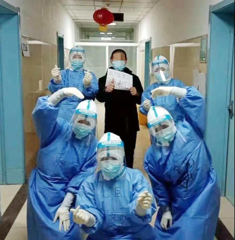 恢复期患者中老人居多,有的老人害怕扎针,一采血就特别紧张。“我们经常接触孩子,总结了一套缓解紧张的办法,聊天就很有效。”金瑛雪说。每次采血前,她们都先跟老人轻松地聊天,在聊天中扎针采血。没等感觉到疼,已经采完了,“把患者当成家人,将心比心,注重细节,才能让患者感受到关心,也有利于他们的康复。”“我们出院了,谢谢你们”在日夜的坚守中,在尽心的照顾下,一批又一批恢复期患者康复出院。看着他们安全离开,每个人的心里都激动万分,祝福满满。患者们也发出内心的感激,一句“感谢”道出这段时间他们和医护人员间的深厚情谊,也说出自己的心里话。