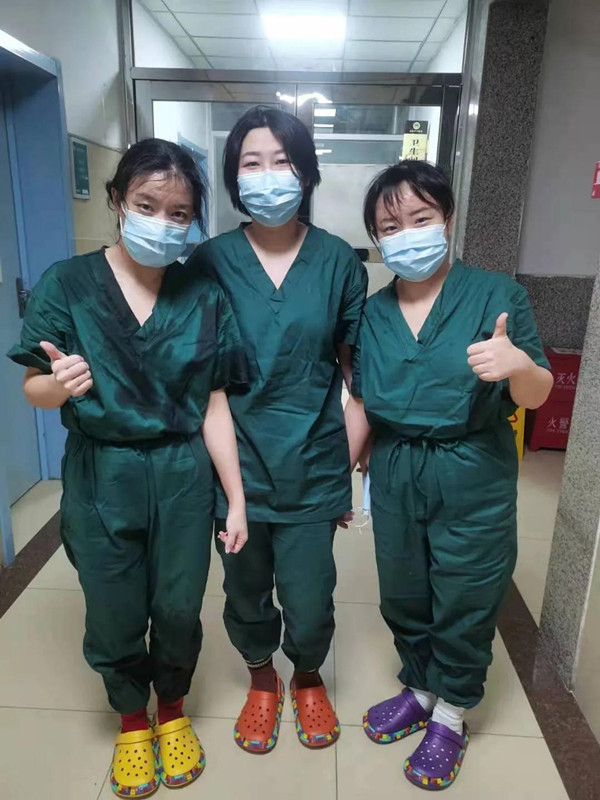 病区内排班是24小时6班倒。如果赶上0点或4点的班,就得提前准备。为了能提前起床,大家把闹铃定了好几遍,每隔5分钟响一次。就这样,没有人误点,甚至都提前起床,“办法总比困难多,只要能保证工作,这些都不是问题。”赵雪说。