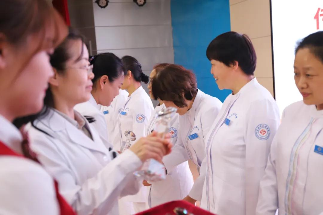 现场,院领导为31位达到30年护龄的护士颁发“爱心无限 奉献永恒”纪念奖杯。