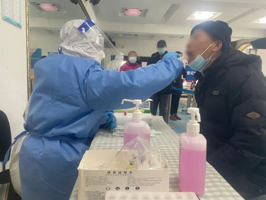 全员核酸采样,时间紧、任务重。为做到核酸检测工作全覆盖、无遗漏,采样队伍既要值守在小区采样点,还需要连夜奋战,爬楼入户。高强度的采样工作,队员们咬着牙坚持着。期间,医保科的冯曦更是晕倒在采样台,但无论大家如何劝说,短暂休整后,她仍坚持上岗。她说,关键时候怎么能掉队,这点事儿都不算事儿。