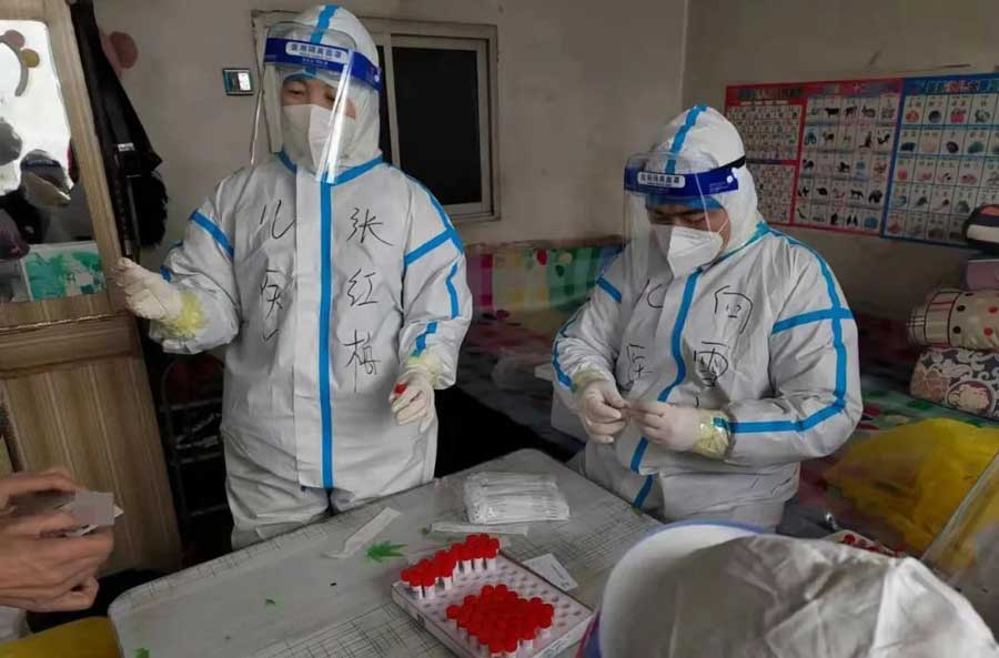沿河社区的高层楼梯、卡伦镇的村院门户、其塔木镇的漫天大雪、九郊社区的春暖花开,在啪啪网 感染性疾病科护士张红梅的心中印象极为深刻,因为这是她和50多名队友支援九台区核酸采样中的亲历。