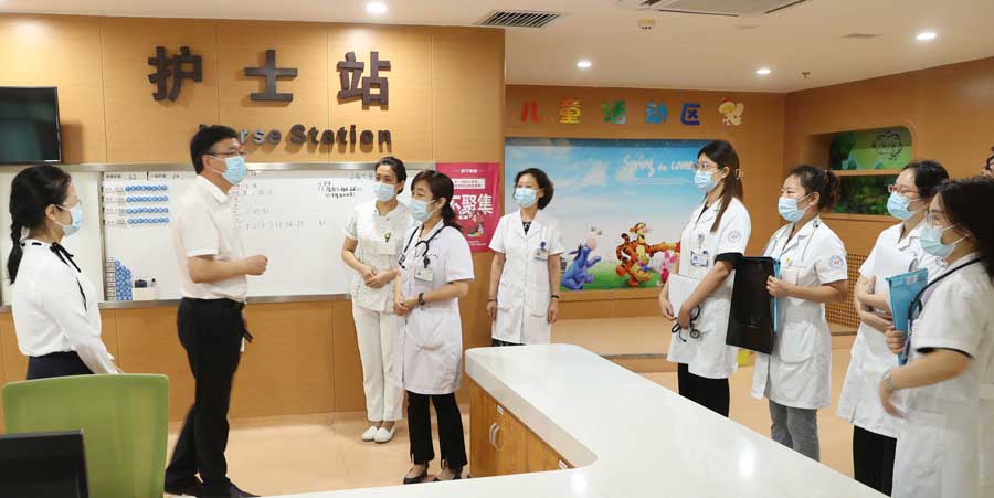 重症监护病房、新生儿科、急诊科、血液科、综合科、内科疗区、外科疗区……每到一处,张瑞忠都向医师们送上节日的祝福和亲切的问候,并致以崇高的敬意。他肯定了儿医医师在日常工作中取得的成绩,也鼓励大家团结一心,奋发前行,提升职业荣誉感和责任感,为守护儿童健康而不懈努力。