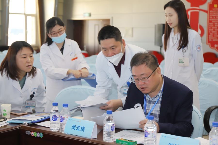 听完汇报,尚云晓、邹映雪两位考评专家对照项目规范化建设标准,以现场查看、查阅资料、抽调病例等形式进行考评,并深入呼吸科门诊、变态(过敏)反应诊疗中心门诊、内镜中心等区域,对其硬件设施及科、教、研等方面的能力和水平进行实地考评。考评组对医院呼吸科的科室管理、临床诊疗和科研教学等工作予以充分肯定,对不足之处提出指导意见和建议。