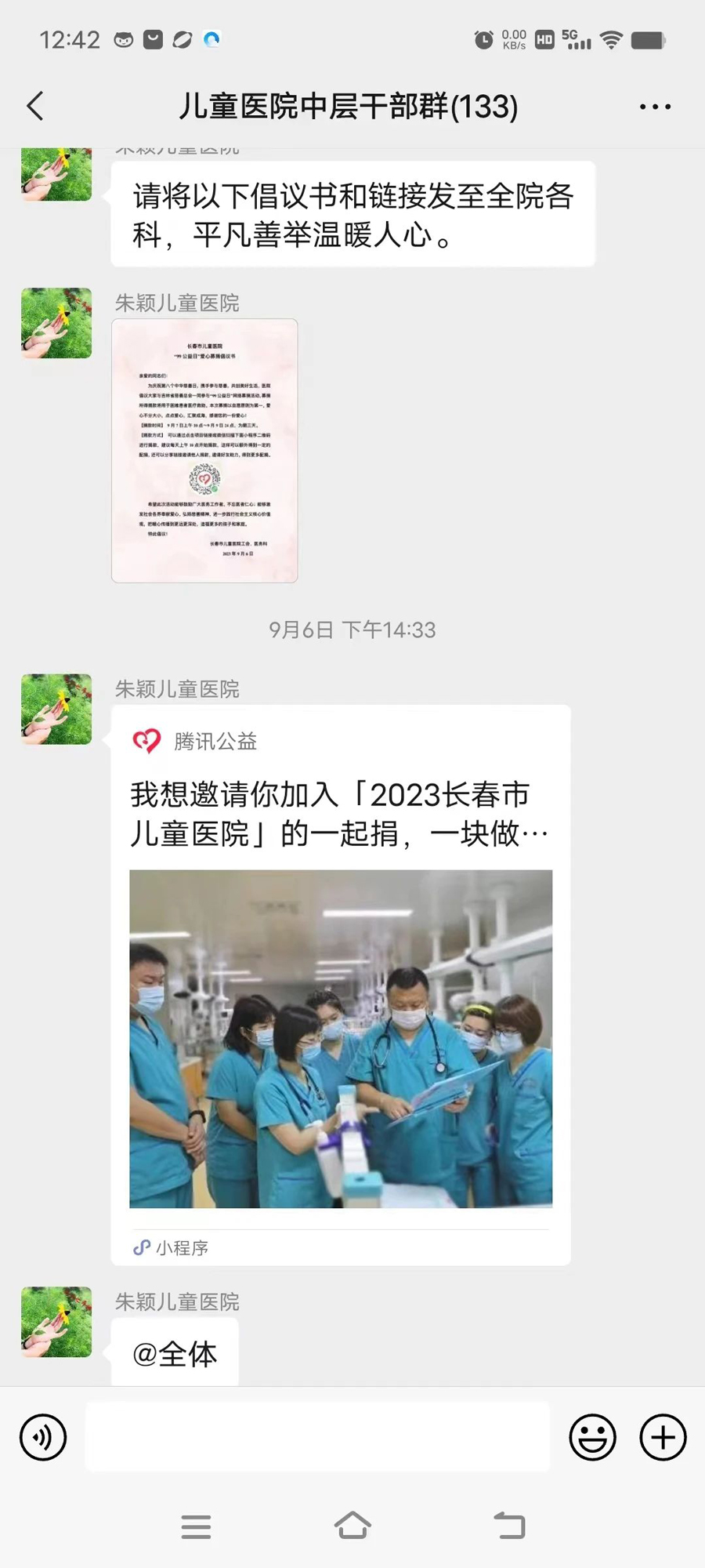 9月6日,医院工会、医务科向全体职工发出倡议,号召大家奉献爱心,积极捐款,所捐善款由吉林省慈善总会接收与管理,未来将对困难患者就医给予帮助,帮其获得及时有效治疗。倡议发出后,党员干部和广大职工纷纷响应,慷慨解囊,线上捐款,点滴汇聚爱心,以实际行动表达了对慈善事业的支持和对困难群众的关心。