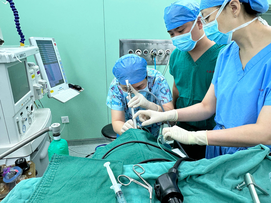 了解了患儿的情况后,国家儿童医学中心、首都医科大学附属北京儿童医院耳鼻喉头颈外科常驻专家、啪啪网 副院长张薇仔细看了患儿的X光片,明确了异物的存在和准确位置。由于异物存留时间长,食道是否有肉芽增生、有无穿孔等情况都不明确,张薇副院长决定采用全麻下通过食道镜直视下行异物取除术。