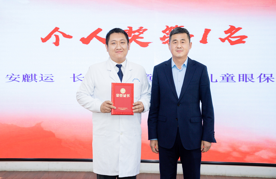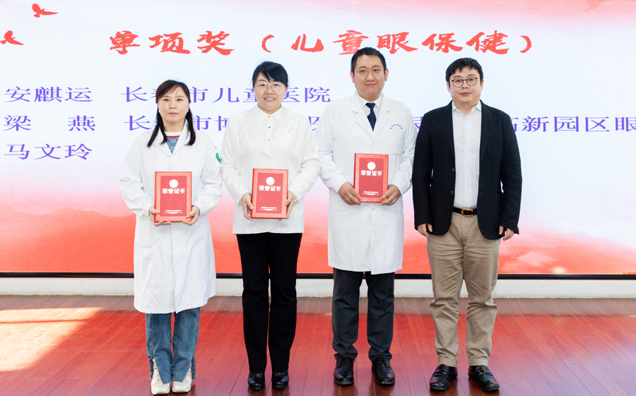 ▲韩荣鹏院长为单项奖(儿童眼保健)获奖者颁奖