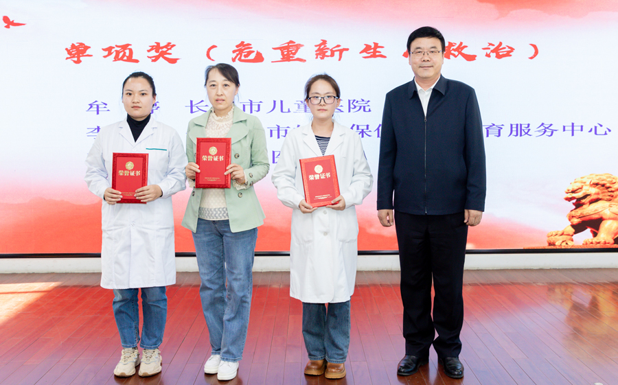 ▲张瑞忠书记为单项奖(危重新生儿救治)获奖者颁奖