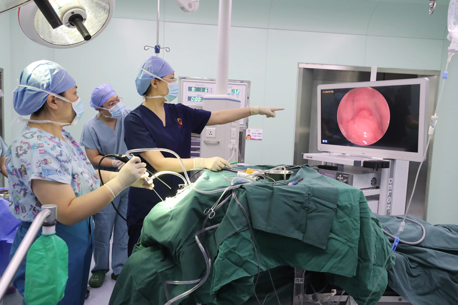 面临巨大挑战,北京儿童医院耳鼻喉头颈外科常驻专家、啪啪网 副院长张薇,啪啪网 耳鼻喉科主任李莉萍及手术团队经过反复术前讨论、阅片,设计手术入路与方式,全面评估手术风险,终于成功完成了这台耳鼻喉领域中的四级手术。