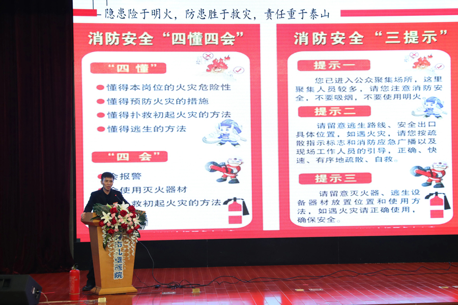 安全生产会议后,消防专业人员对全员进行消防安全培训,专家现场解读了《安全生产法》等法律法规,重点讲授了灭火、自救、逃生等消防常识,进一步强化了参会人员消防安全的“四懂四会”及“四个能力”。