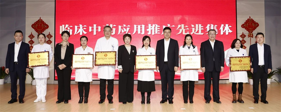 医院领导班子成员分别宣读了对2024年度“优秀教学团队”“优秀科研团队”“临床中药应用推广先进集体”“优秀共产党员”“专家贡献奖”“最佳窗口服务标兵”等进行表彰的决定,并为获表彰人员颁奖。