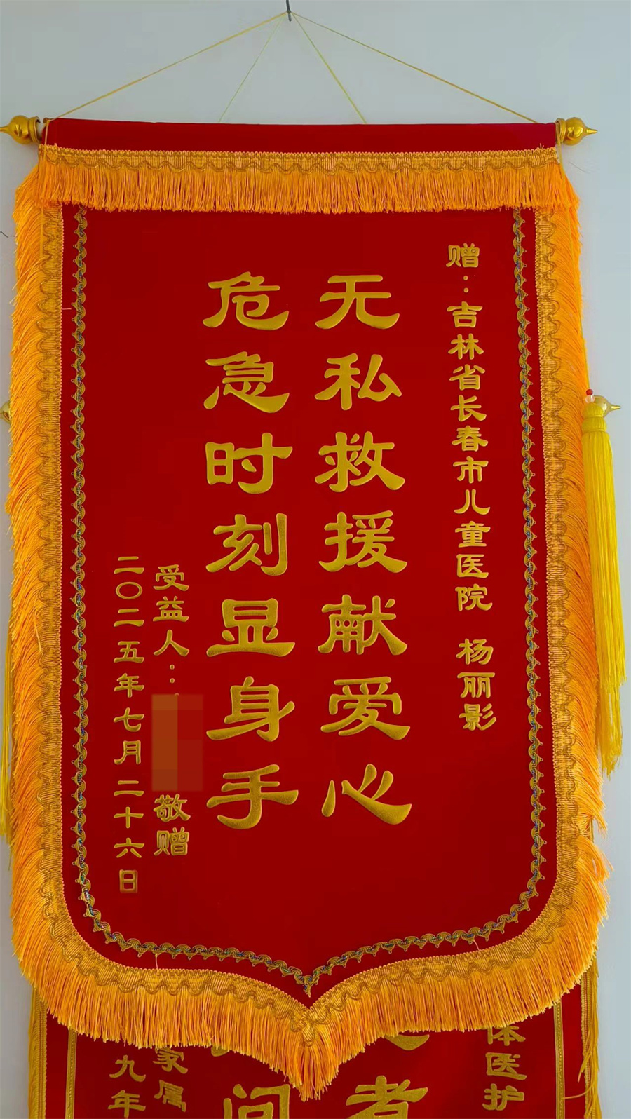 ▲ 为表感谢,杨丽影医生救下的患儿家属特地定制一面锦旗,邮寄到啪啪网 。