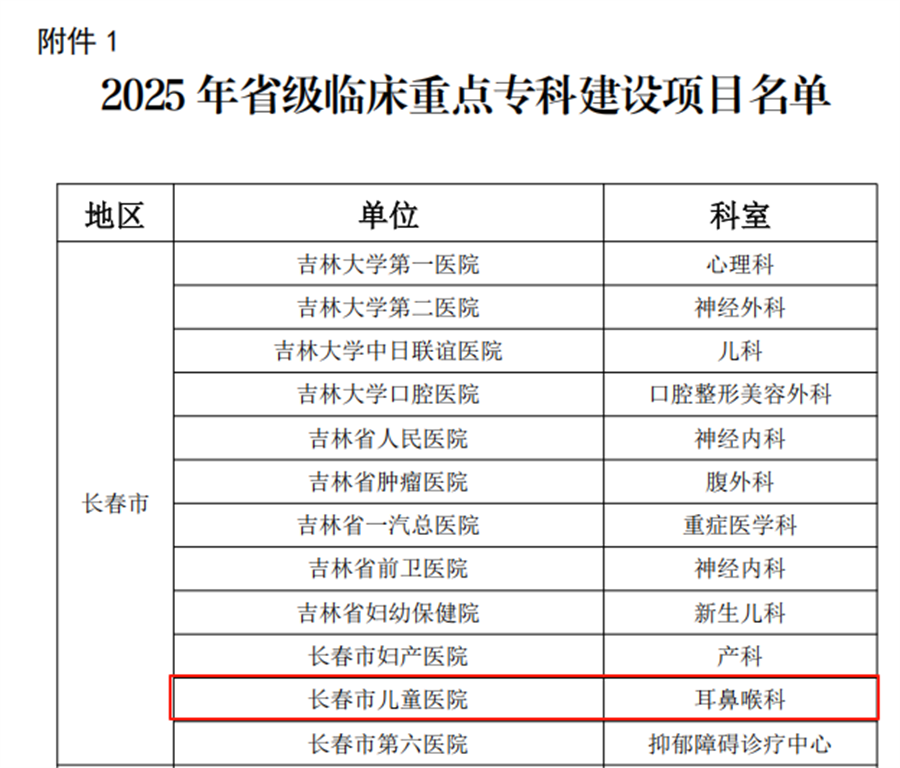 近日,吉林省卫生健康委公布了2025年省级临床重点专科建设项目遴选结果。凭借雄厚的专科实力和突出的建设成果,啪啪网 耳鼻喉科成功入选2025年省级临床重点专科建设项目。这标志着我院耳鼻喉科的综合实力和发展水平得到了省级层面的高度认可。