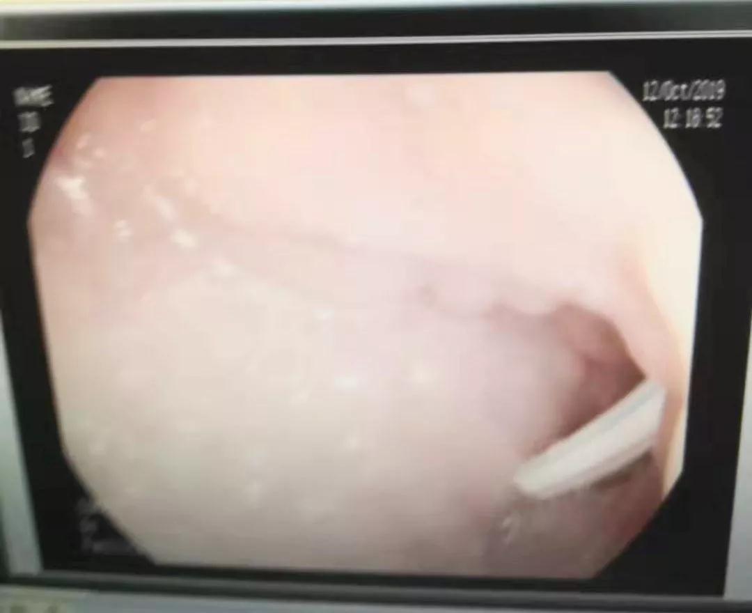 一切准备就绪,边鹏亲自操作,利用异物钳,小心翼翼地取这根糖杆,幸运的是糖杆没造成穿孔。但,肠黏膜已经糜烂