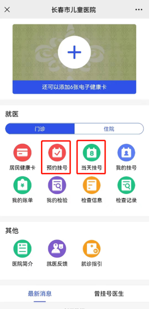 进入“智慧医疗”,点“预约挂号”或“当天挂号”