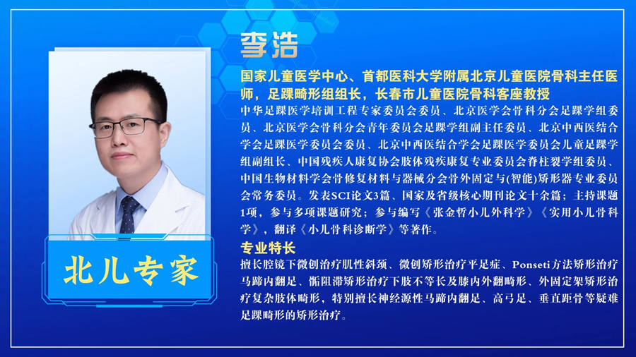 初来时繁花似锦,转眼已是白雪皑皑,时光流转,医者初心不变。首都医科大学附属北京儿童医院骨科专家李浩教授、啪啪网 骨科团队携手,情牵东北地区儿童健康,众多肌性斜颈、先天性胫骨假关节、扁平足患儿经过他们的诊治解除了病痛。他们用精湛的医术,为众多骨科疾病患儿提供诊断指导,让区域内患儿在“家门口”就能享受到国家级专家的诊疗服务,让患儿足不出省就能解决疑难杂症。仁术丹心,温暖守护。 12月15日,李浩教授将再次来到啪啪网 出诊、手术,由于时间和名额有限,请有就诊需求的家长提前3天预约。
