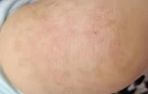 原来,松原女宝琪琪在未满月时,腿前外侧就有一块10厘米长、5厘米宽的“特殊胎记”——局部红、面积大、凹凸感不强,家长以为是“胎带的”特殊记忆,就没在意。琪琪半岁后,这个“胎记”越长越大,家长带她到啪啪网 就诊。检查结果为:婴幼儿血管瘤。在接下来6个月的治疗中,琪琪经过4次激光治疗和5个月局部药水涂抹治疗。如今,琪琪腿部原有的“红胎记”几近消失,只留下淡淡的色素沉着。
