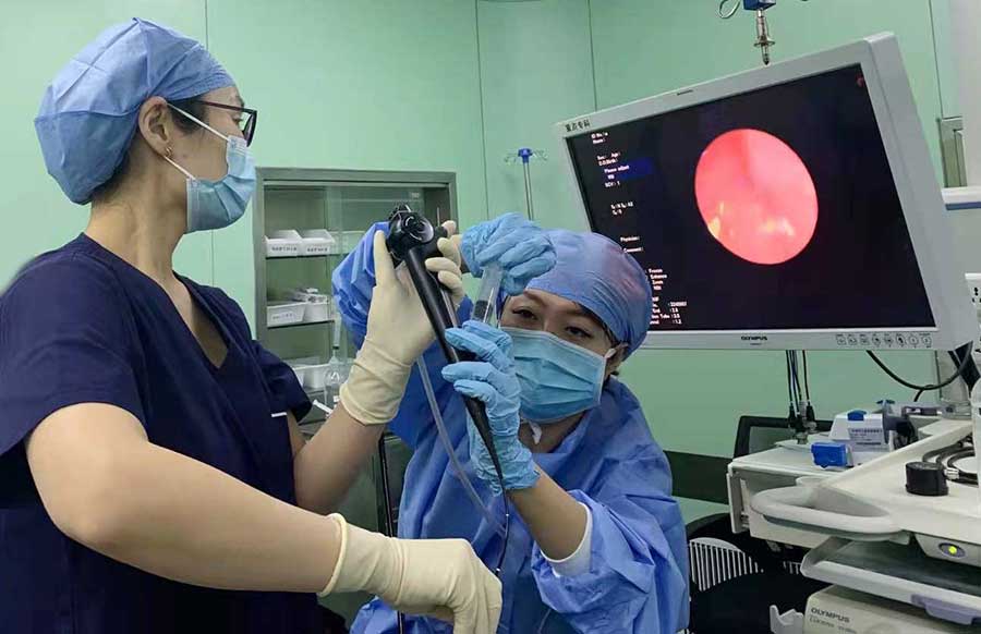 副主任边鹏在取异物方面有丰富的经验,她考虑异物存在时间长,异物有已经穿透组织、损伤外面血管的可能性,在剥开肉芽组织取出异物的过程中,有大出血的风险。基于此,内镜中心邀请耳鼻喉科、胸外科进行术前讨论,为手术做充分的准备。术中,耳鼻喉科、胸外科医生一直在手术室备台。
