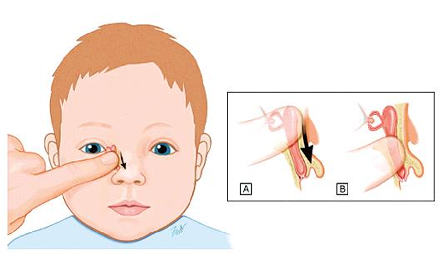 什么是先天性鼻泪管阻塞呢?李娅娜说,眼泪是由主、副泪腺产生并向内侧流入泪小点,然后经泪小管流至泪囊,随后经由鼻泪管进入鼻腔。任何导致泪液分泌增多或者引流不畅的原因都可以导致婴儿眼泪汪汪的。在婴儿中,先天性鼻泪管阻塞最为常见,病因是远端(即最靠近鼻部的位置)成管不完全,导致Hasner瓣上有一层无孔膜,从而导致泪液引流不畅。
