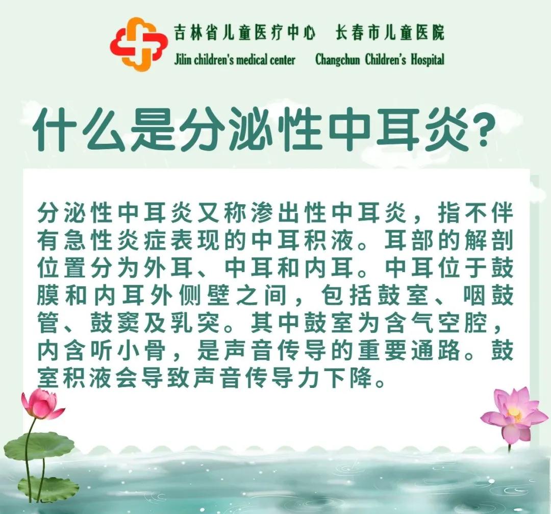 李莉萍副主任解释:“分泌性中耳炎是中耳非化脓性炎症,患儿常常出现耳闷、耳胀、听力下降、耳鸣等不适症状。但是由于症状不典型,常常被家长忽略。腺样体肥大是儿童分泌性中耳炎最常见病因,所以当发现儿童听力下降或者反复耳部不适,要及时就诊,尤其是对于伴有睡眠打鼾的儿童,更应该给予足够重视。”