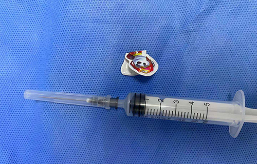 李萍试着用力压迫舌根,孩子哭闹的同时,异物边缘上升到口咽部,这是夹出异物的好时机。但异物表面覆盖一层唾液,非常滑,镊子无法夹取。换成异物钳,李萍果断更换设备,瞅准时机,稳准快,一下就把异物取出来了,孩子的气管、声门均无损伤。从患儿进入门诊到异物取出,前后仅20分钟。