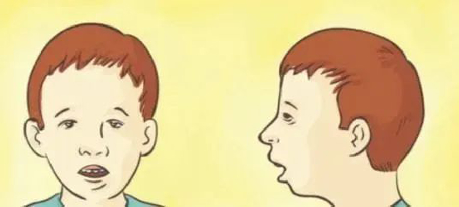 腺样体面容:由于长期张口呼吸,致使面骨发育发生障碍,颌骨变长,腭骨高拱,牙列不齐,上切牙突出,唇厚,缺乏表情,出现“腺样体面容”。