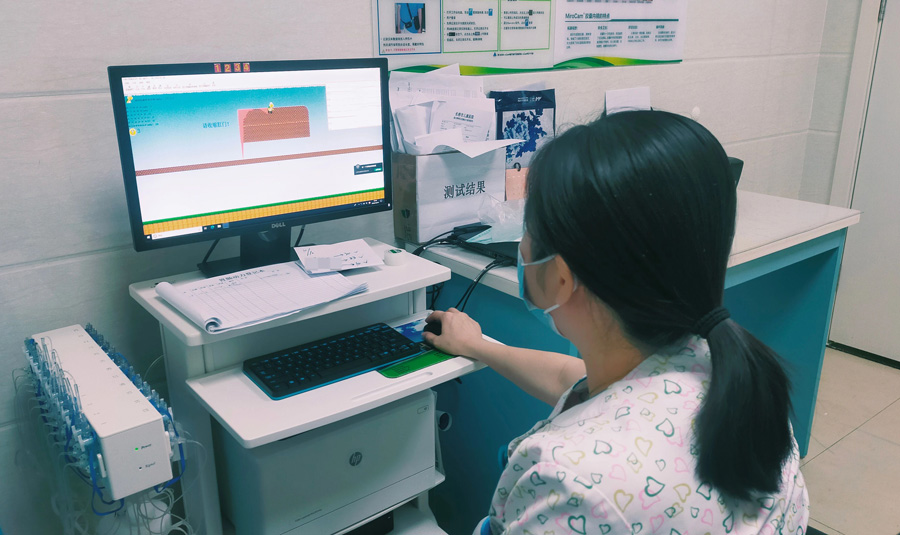 原理:肛门直肠测压是将水灌注高分辨测压导管置入消化道腔内,以水为介质,令肛门收缩与放松,检查内外括约肌、盆底、直肠功能与协调情况,量化和评估直肠肛门自制和排便功能的一种方法,对直肠肛门的生理功能是否存在异常作出评估,有助于分辨便秘的类型。
