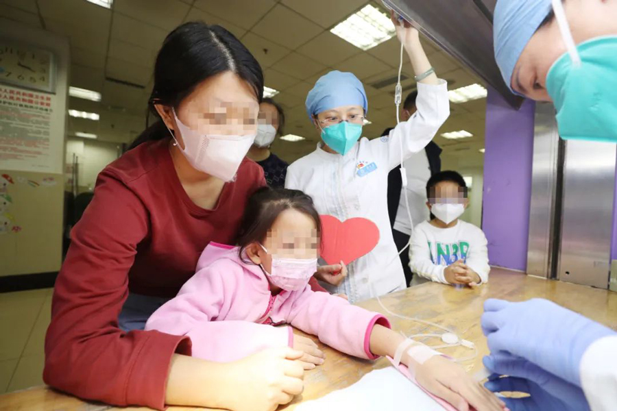 门诊党支部静点中心主任刘宇奇、护士长吕军艳带领全体医护人员活学活用,将党建与业务相结合,开展“以变换心”爱心服务活动,党员们利用休息时间为静点患儿制作了五颜六色的精美卡通手板和爱心卡片,将医院人文关怀融入其中,让静点患儿治疗不害怕,使医学治疗有温度、有情感。