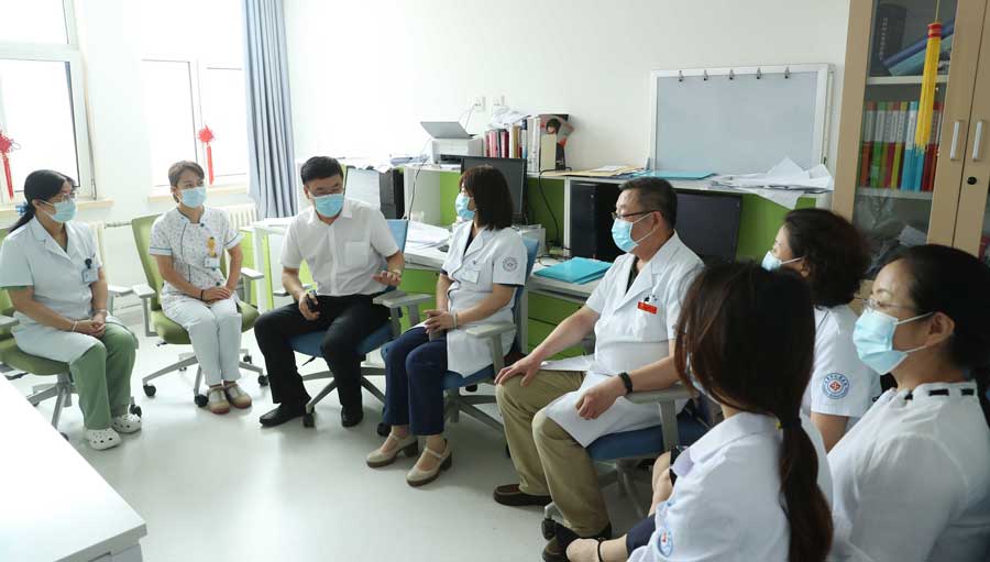 在与医师们座谈中,张瑞忠详细询问了科室医护人员构成和患者量等基本情况。他鼓励大家把在工作中碰到的困难、在学科发展中遇到的瓶颈都讲出来,集思广益,共同想对策;更希望大家把促进学科发展的好想法和好建议也提出来,共同助力医院的快速发展。听了大家的汇报,张瑞忠根据各科室的具体情况,对科室的业务发展给予指导。