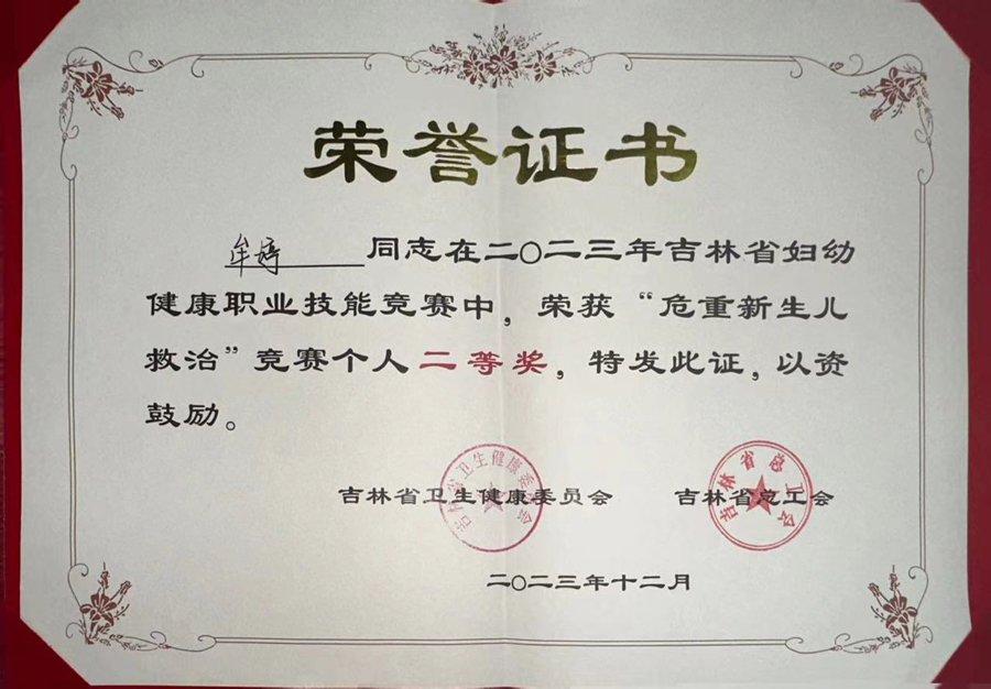 学知识、练本领、强技能、夯基础,12月13日,由吉林省卫生健康委和吉林省总工会主办的吉林省妇幼健康职业技能竞赛圆满落幕。经过两天激烈角逐,啪啪网 新生儿科医生牟婷从76名参赛选手中脱颖而出,荣获个人二等奖。