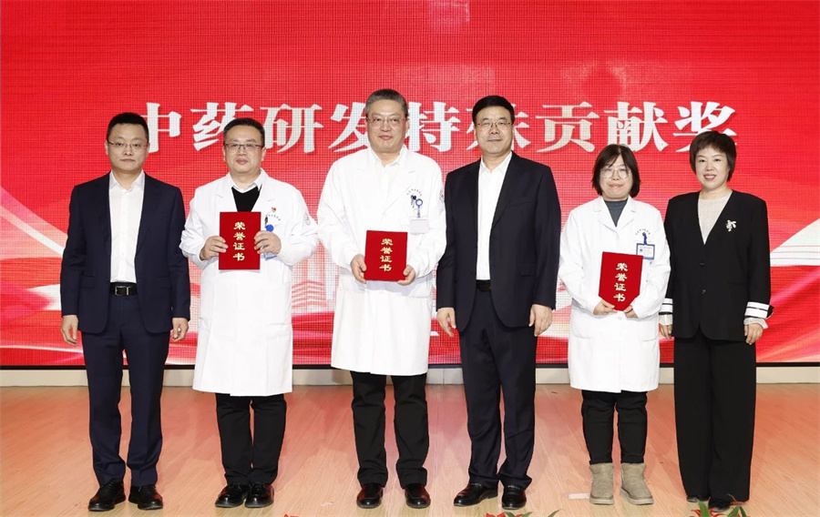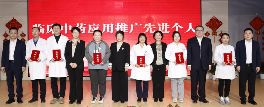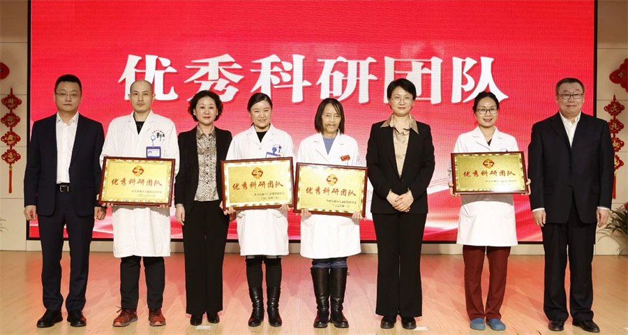 医院领导班子成员分别宣读了对2024年度“优秀教学团队”“优秀科研团队”“临床中药应用推广先进集体”“优秀共产党员”“专家贡献奖”“最佳窗口服务标兵”等进行表彰的决定,并为获表彰人员颁奖。