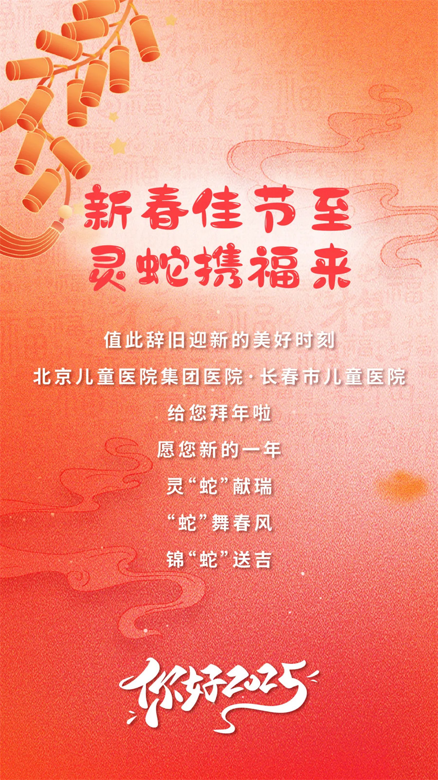 叮!这是一份“儿医”送给您的新年祝福,请查收! 儿童医院 |2025-01-29 08:31 编辑:王凤娜初审:王启明复审:王启明终审:王莹 齐红 上一篇召开节前工作部署会,平安祥和迎新春 下一篇除夕暖心行丨我院领导班子成员慰问一线员工 返回列表 相关信息 有奖互动丨新年,请寄出送给孩子的第一份祝福 2025-01-01 秋季第一份“儿童常见疾病预防宝典”已发送,请家长查收! 2022-09-10 一面锦旗,一份医师节的祝福 2024-08-19 献礼医师节,致敬忙碌在一线的儿医人! 2019-08-19 叮!您有一封端午义诊邀请函,请查收 2024-06-07