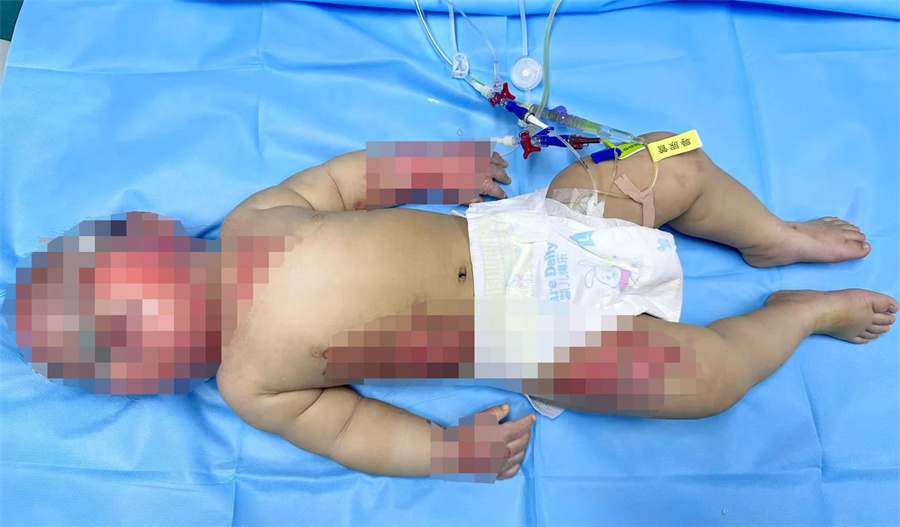 意外突至,男婴重度烫伤