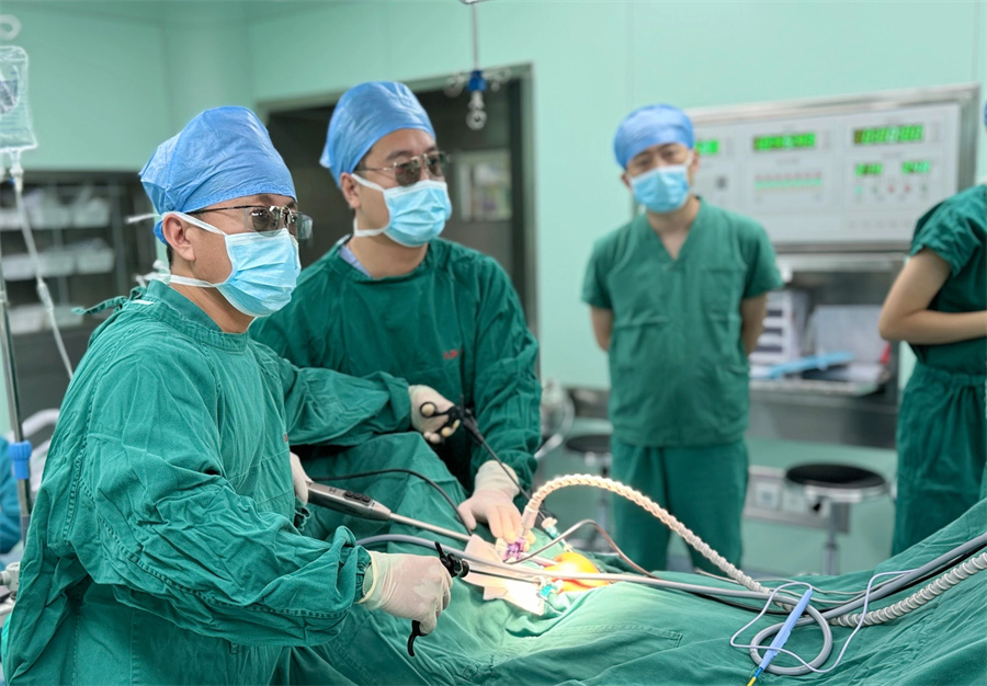 2015年,谢方达受邀赴香港大学玛丽医院小儿外科微创治疗中心深造。在那里,他第一次接触到代表外科技术尖峰的达芬奇手术机器人。复杂的尿路重建手术,竟也能通过机器人精准地完成!这次认知的飞跃,不仅拓宽了他的视野,更坚定了他深耕微创外科的信念。回到医院后,他结合医院实际,攻坚克难,成功开展更为复杂的肾积水微创手术。在他的引领下,科室实现了尿路重建精细化手术治疗全面覆盖,整体外科诊治能力迈上新台阶。