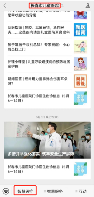 进入“智慧医疗”,点“预约挂号”或“当天挂号”