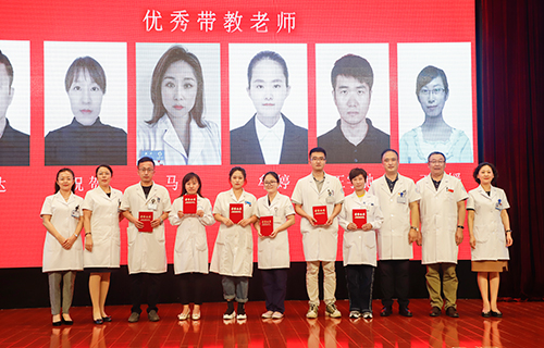 优秀教师代表祝贺说,因从事规培带教工作,圆了她的教师梦,让她体验到教师的光荣与伟大,也深感任重而道远。3年的规培生活让规培生赵日受益匪浅,她说,一定努力向老师们学习,终有一天她会成为像老师一样优秀的医者。