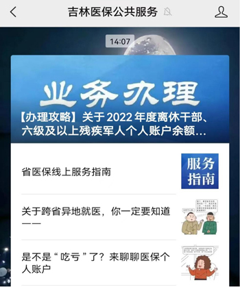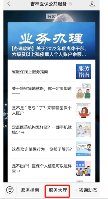 登录“吉林医保公共服务”微信公众号
