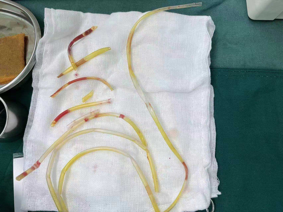 病例2:一团30cm长输液管堵在尿道内