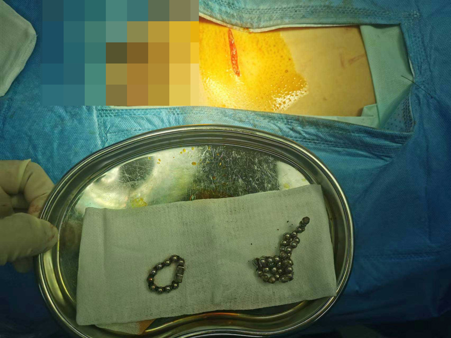 病例1:膀胱、尿道取出近50颗磁力珠
