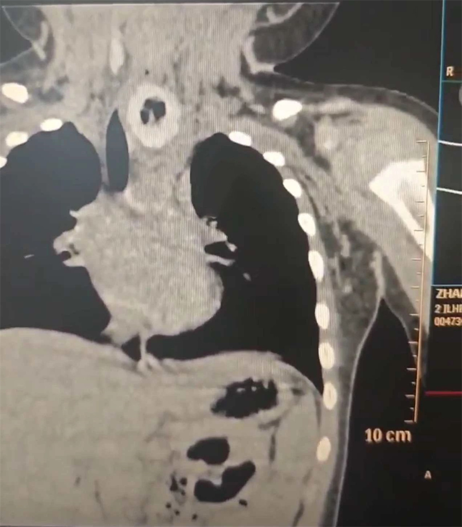 住院时,牛牛呼吸平稳,但张口流涎,偶有呛咳,这些症状高度提示食道内存在异物。医生团队评估后,认为手术取出异物是最有效的处置手段。经充分沟通后,家长认可该治疗方案。