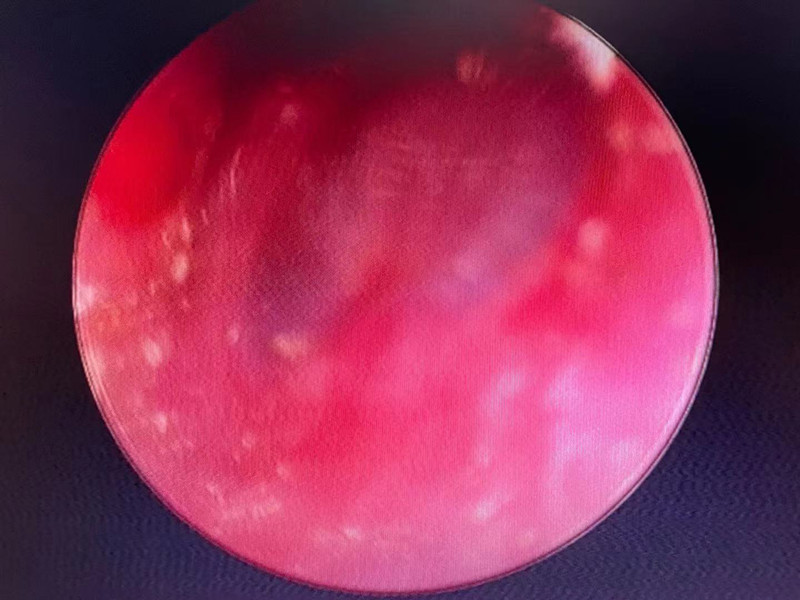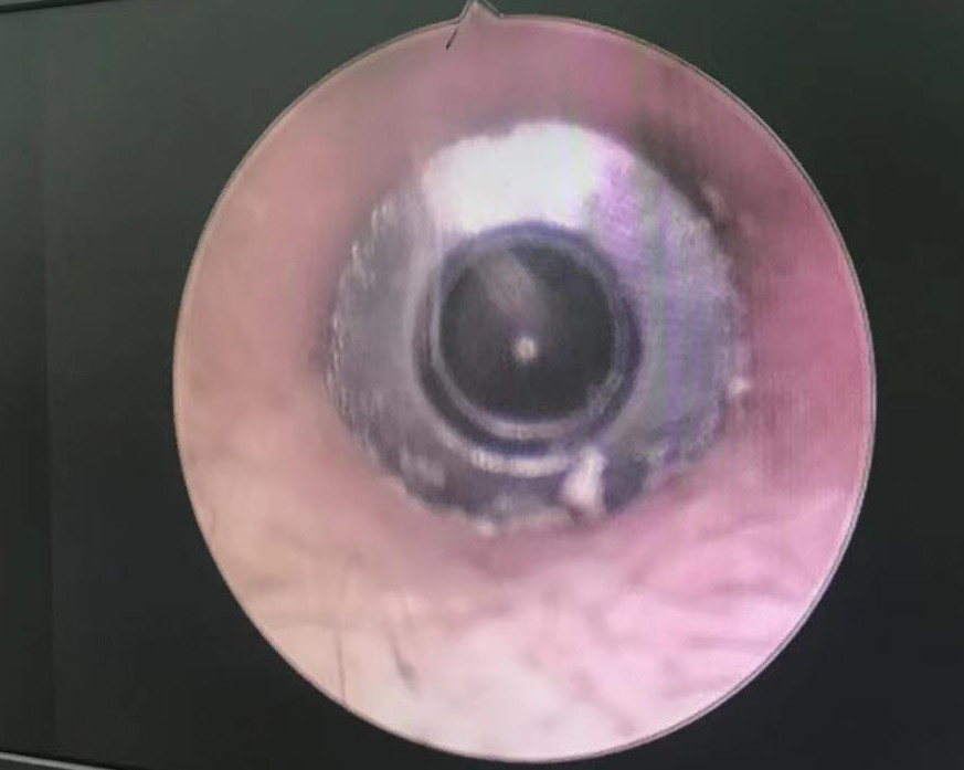 李萍检查发现异物所在位置较深,需在全麻下取出。术前,李萍给乐乐做耳镜检查,发现其右耳道内紧贴着鼓膜的地方可见两个异物。