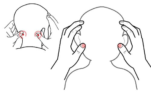 位于枕骨下,当胸锁乳突肌与斜方肌上端之间凹陷处,用拇指或中指端揉该穴,揉30-50次。