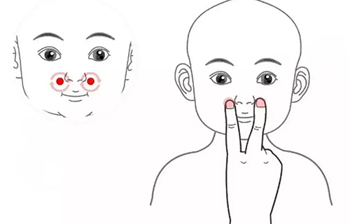 用双手食指指腹自鼻梁两侧鼻翼处开始至鼻根部,来回推擦30下,至鼻梁发热,慢慢揉着一般能出来些鼻涕。