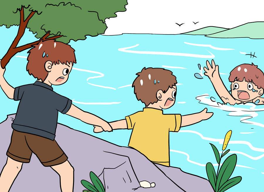 6.发现同伴溺水,立即寻求成人帮助,同时可向溺水者抛救生圈、泡沫板、救生绳等,但不可盲目施救。