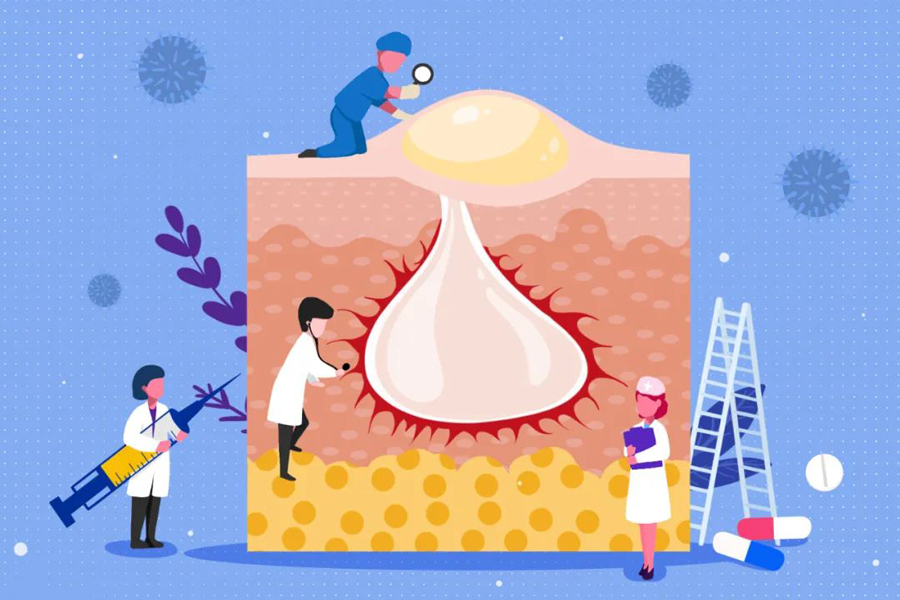 皮脂排出障碍:小儿皮脂腺快速发育和皮脂过量分泌、毛囊皮脂腺导管异常角化引起皮脂排出障碍,最终形成角质栓,且此时易继发细菌感染,常见为痤疮丙酸杆菌感染,引起小儿痤疮。